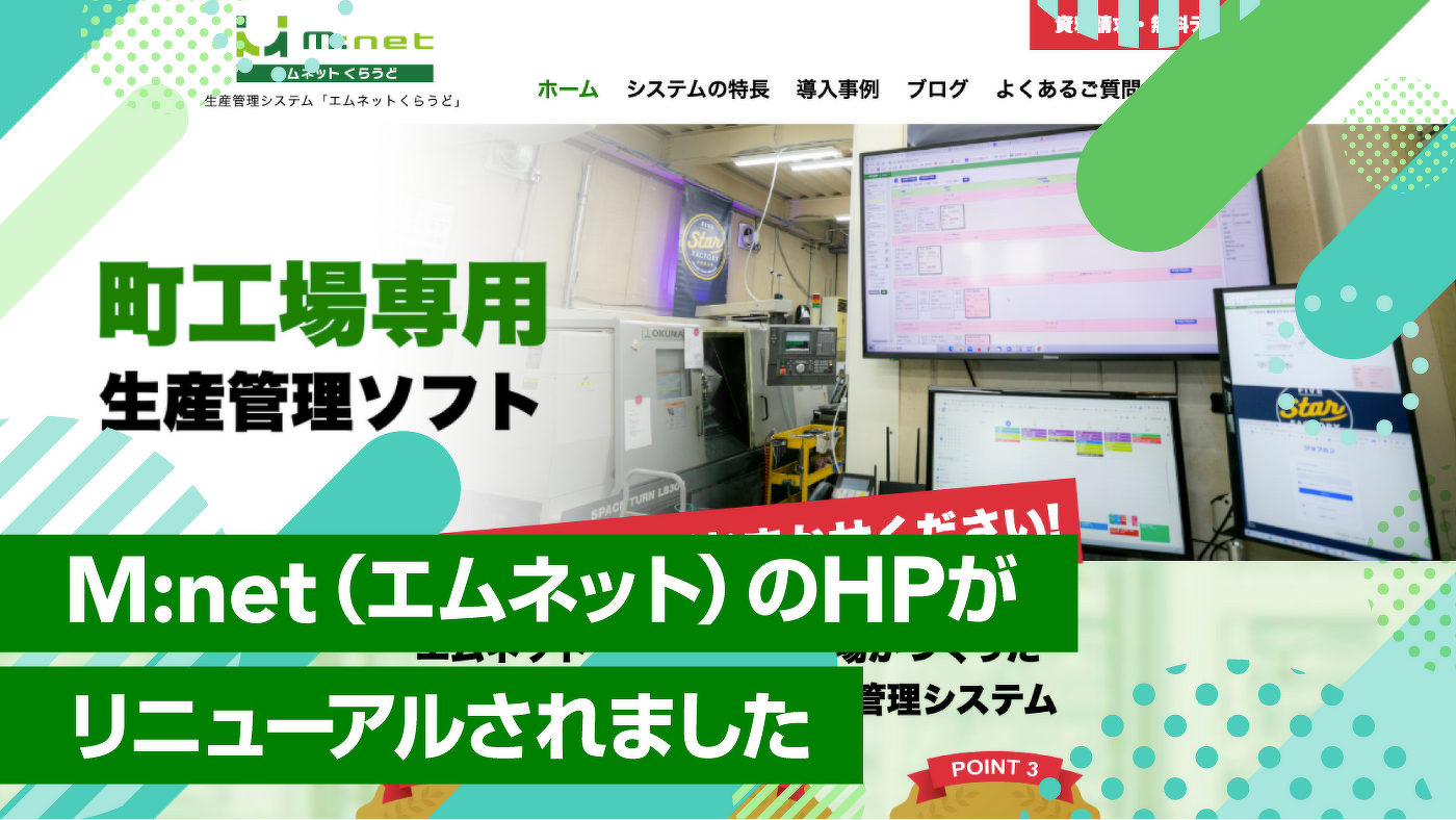 さて、バーコードで納期・工程が管理できるソフトとして、日頃からご紹介している自社開発のソウトウェアM:net(エムネット)ですが、先日HPがリニューアルされました。