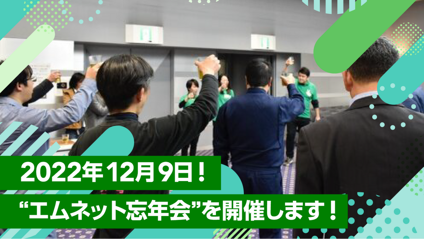 前回2019年に開催してから、新型コロナウイルスの影響で開催できていなかったエムネット忘年会ですが、今年は大いに盛り上げていきたいと思います!