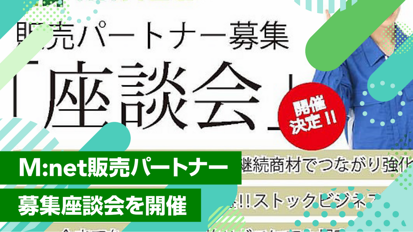 エムネットを販売するにあたって、販売パートナー様には十分なサポートをさせていただきたいという思いから、一定数の制限を設けて募集をさせて頂きます。今回の座談会以降、当面の間募集は予定しておりませんので、ぜひこの機会にご参加ください。