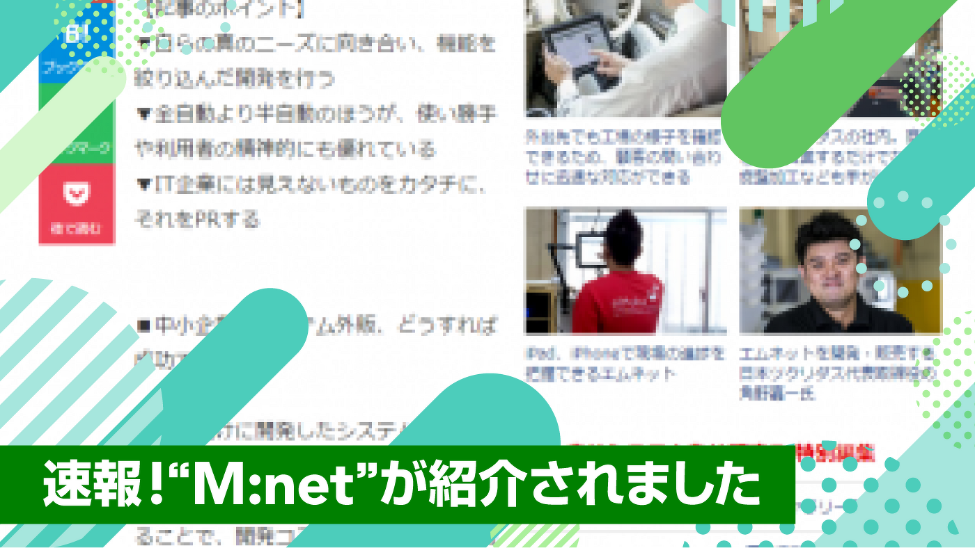 先日、中小企業のためのビジネス情報などを発信するサイト、「HANJO HANJO」で、“M:net(エムネット)”が紹介されましたので、ご案内いたします。