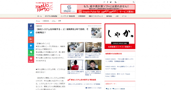角野社長に伺ったところ、「HANJO HANJO」による“システムの外販特集”という企画の元、対象企業をピックアップしていく中に弊社も入れていただいたということです。
