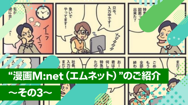 こんにちは! 在宅広報部、ブログ担当の瀧尾です。 『M:net(エムネット)活用ブログ』に掲載されている“漫画M:net”は、多くの方に...