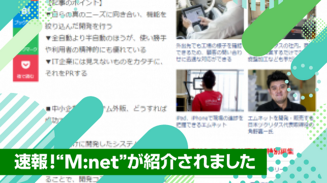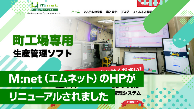 製造業がソフトウェア開発!? 製造業による、製造業のための納期管理システム「M:net(エムネット)」です。 これからブログをはじ...