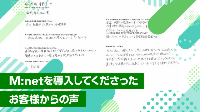 エムネットは製造業が作った製造業のための納期管理ソフトです。 私たち自身が製造業だったから、私たちが使う中でいろんな問題に...