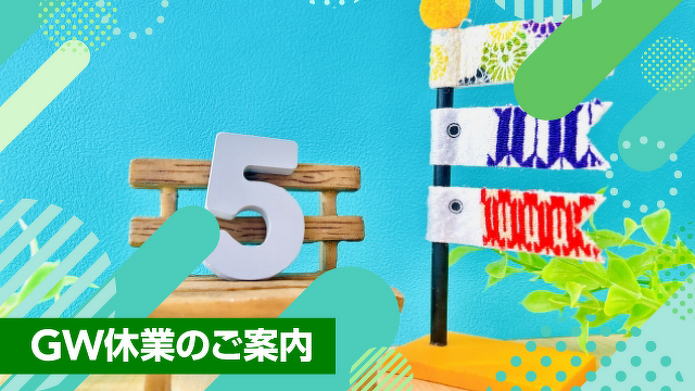 こんにちは。 在宅広報部、ブログ担当の瀧尾です。 本日はGW休業のご案内です。 今年のゴールデンウイークは長い方で9連休となる...